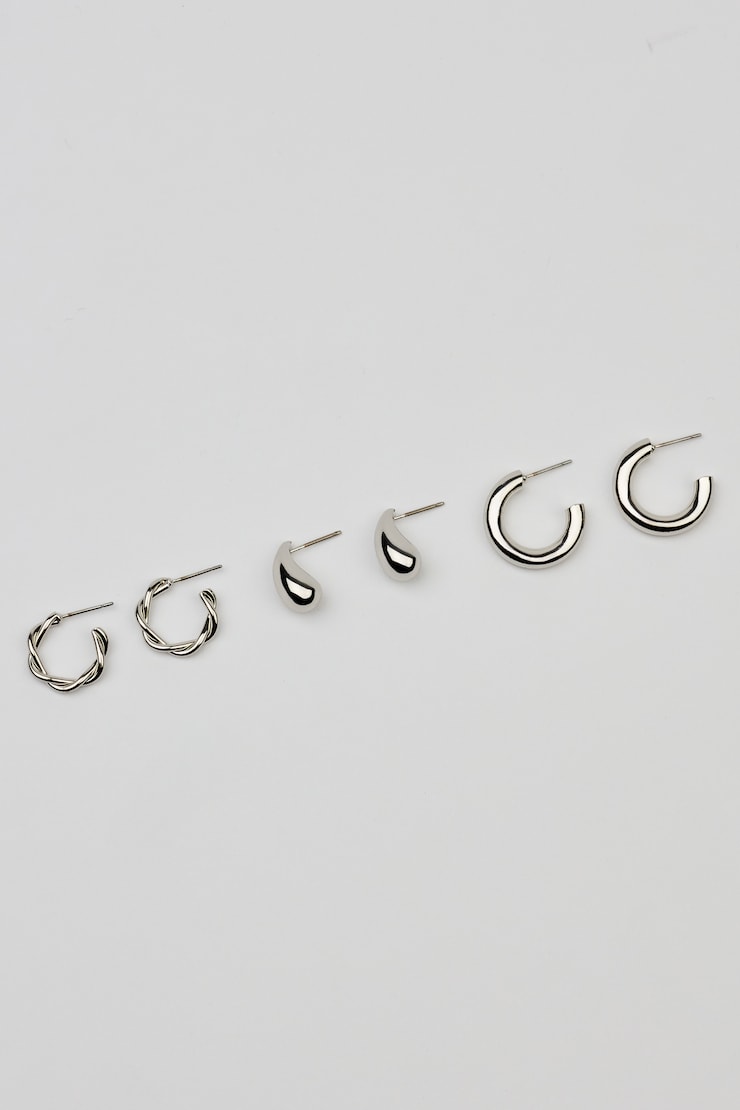 3 sets of sculptural hoop and stud earrings
